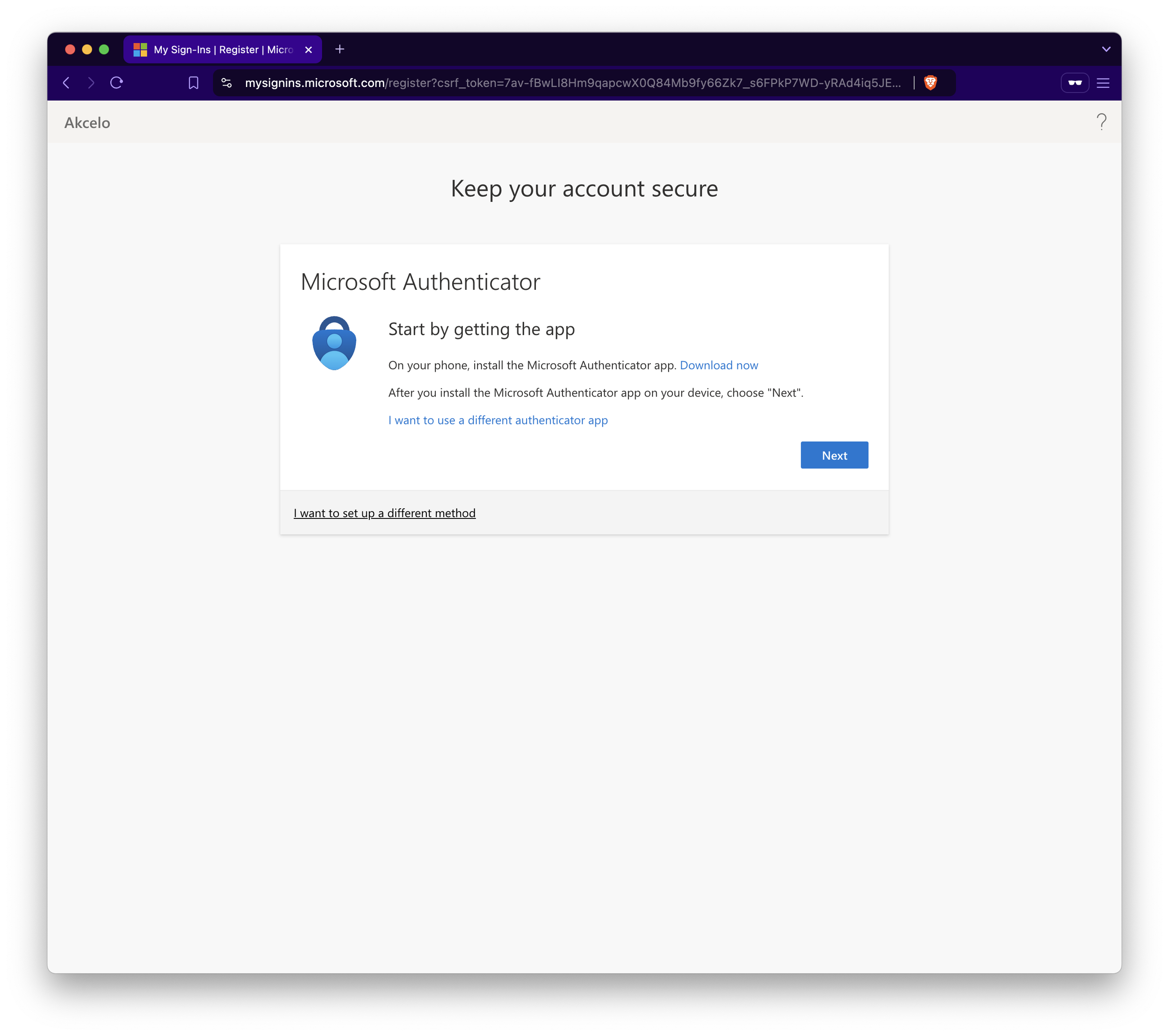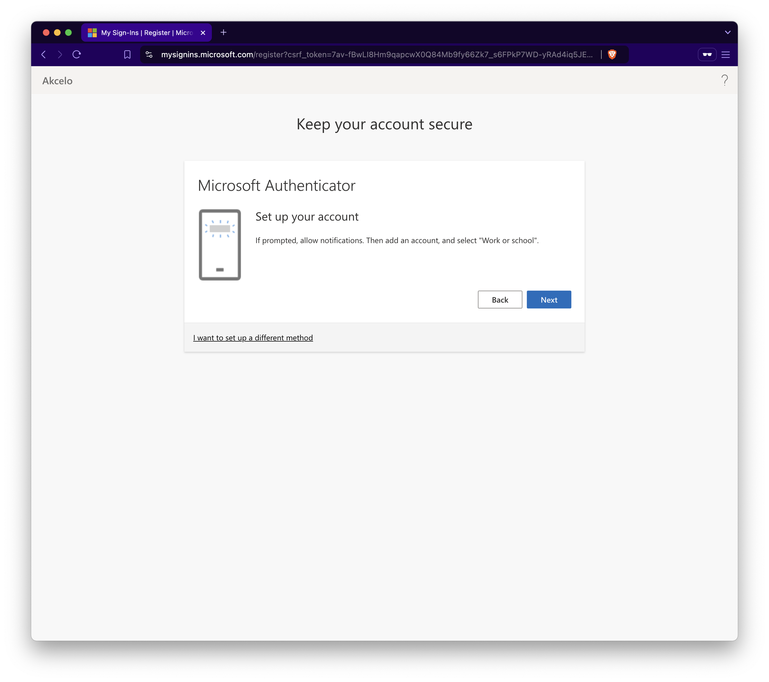 4. Computer - Set Up Microsoft Authenticator Continue to follow the setup prompts on the Microsoft login page and choose Next